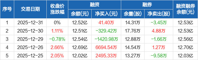 宏达股份:融资净买入41.4万元,融资余额12.52亿元(12-31)