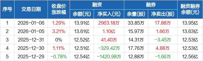 宏达股份:融资余额13.91亿元,创历史新高(01-06)