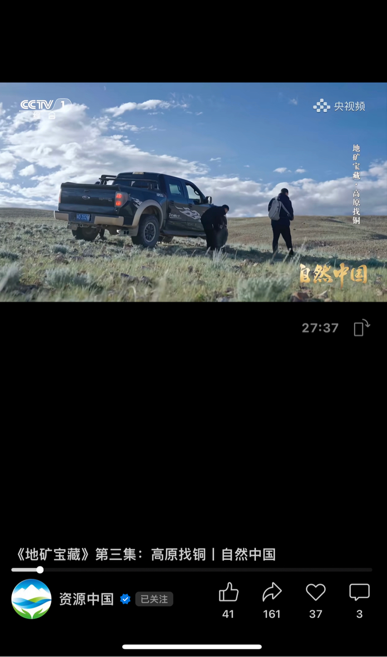 中央电视台放了高原找铜,到西藏去发现铜矿。写了地质部的专家在西藏找矿的艰辛过程。