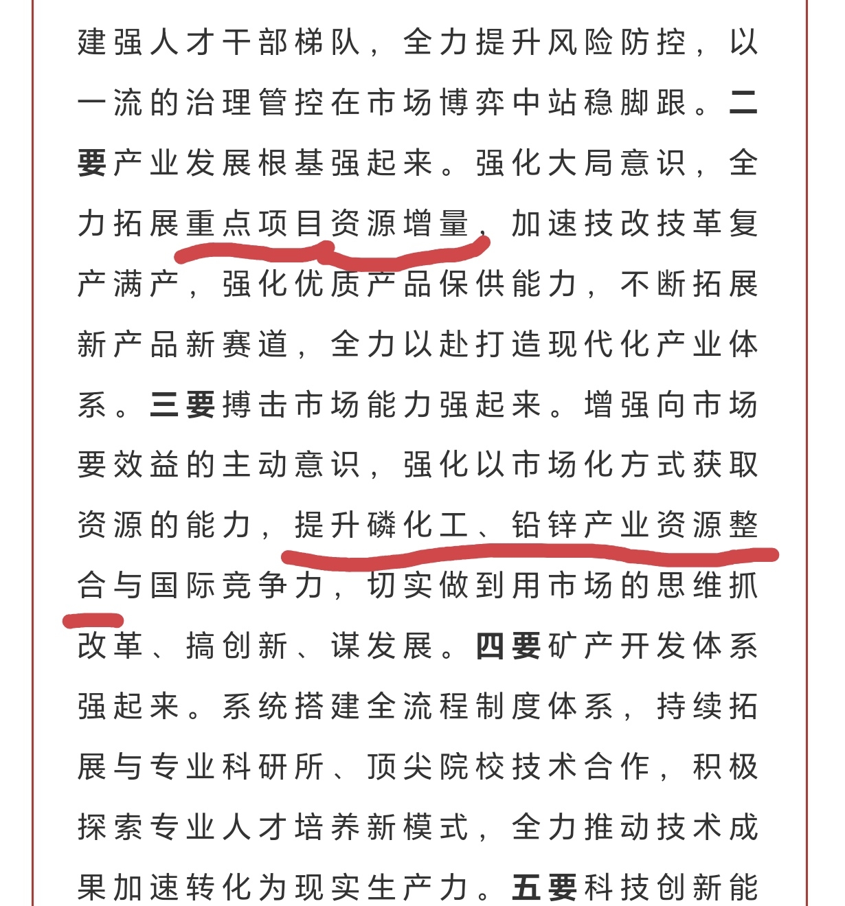 $宏达股份(SH600331)$ 我来翻译一下,拓展重点项目资源增量就是多龙铜矿增储以及多不杂西详查。提升磷化工、铅锌产业资源整合那大概就是磷矿以及铅锌矿注入。加强外部优质矿场资源的跟踪获取,成为蜀道集团矿业板块资本市场的窗口,名片,那就是市值要做大做强,门面担当,后续还有各种矿注入的可能。