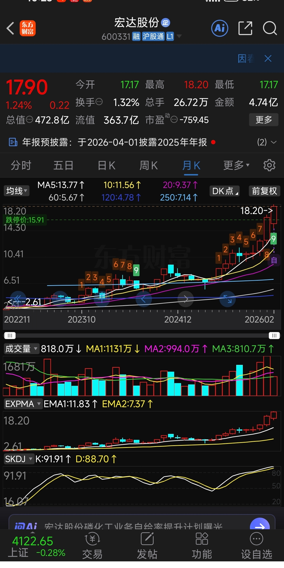 $宏达股份(SH600331)$ 涨到这个价已经很不错了
