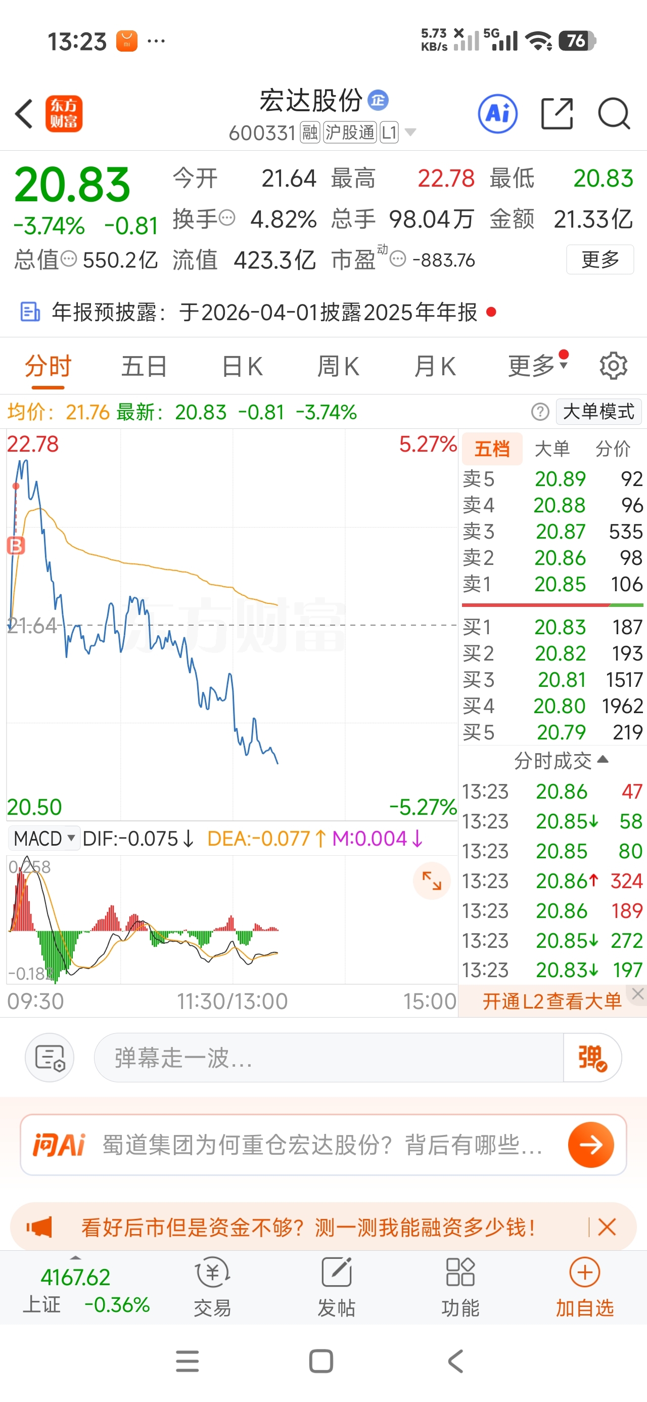 $宏达股份(SH600331)$ 上顶的风是真凉快啊