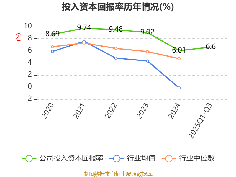盈利能力方面, 2025年前三季度公司加权平均净资产收益率为8.88%,同比上升0.07个百分点。公司2025年前三季度投入资本回报率为6.6%,较上年同期上升0.08个百分点。