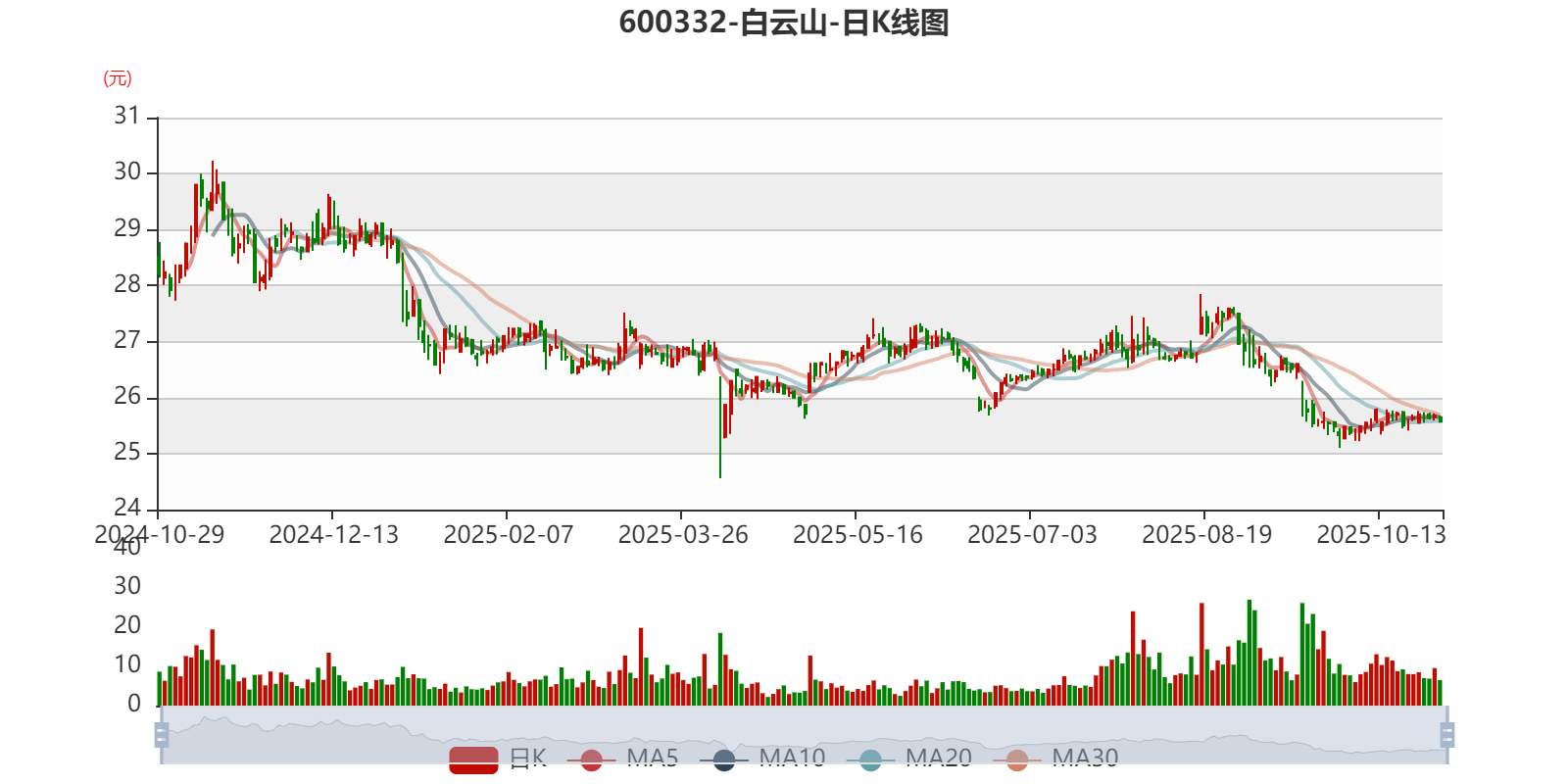 以10月28日收盘价计算,白云山目前市盈率(TTM)约为13.92倍,市净率(LF)约1.1倍,市销率(TTM)约0.54倍。