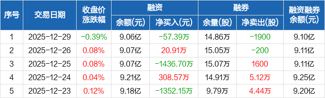 白云山:融资净偿还57.39万元,融资余额9.06亿元(12-29)