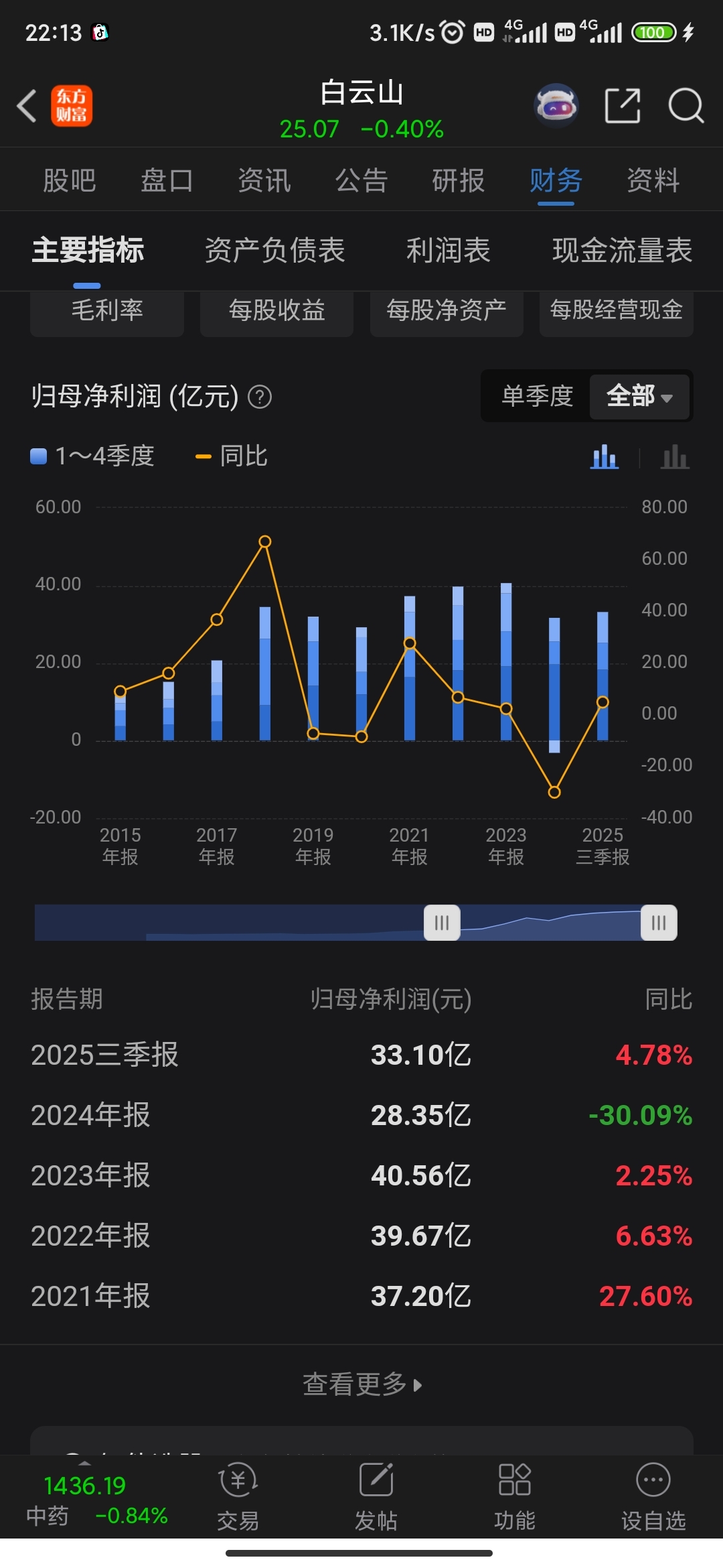 $白云山(SH600332)$ 不涨的原因,大概率是从2018到现在业绩都没有增长了,10倍市盈率正常。