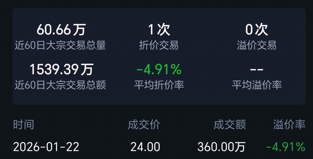 大宗交易24块,怎么回事啊?有没有老铁知道?