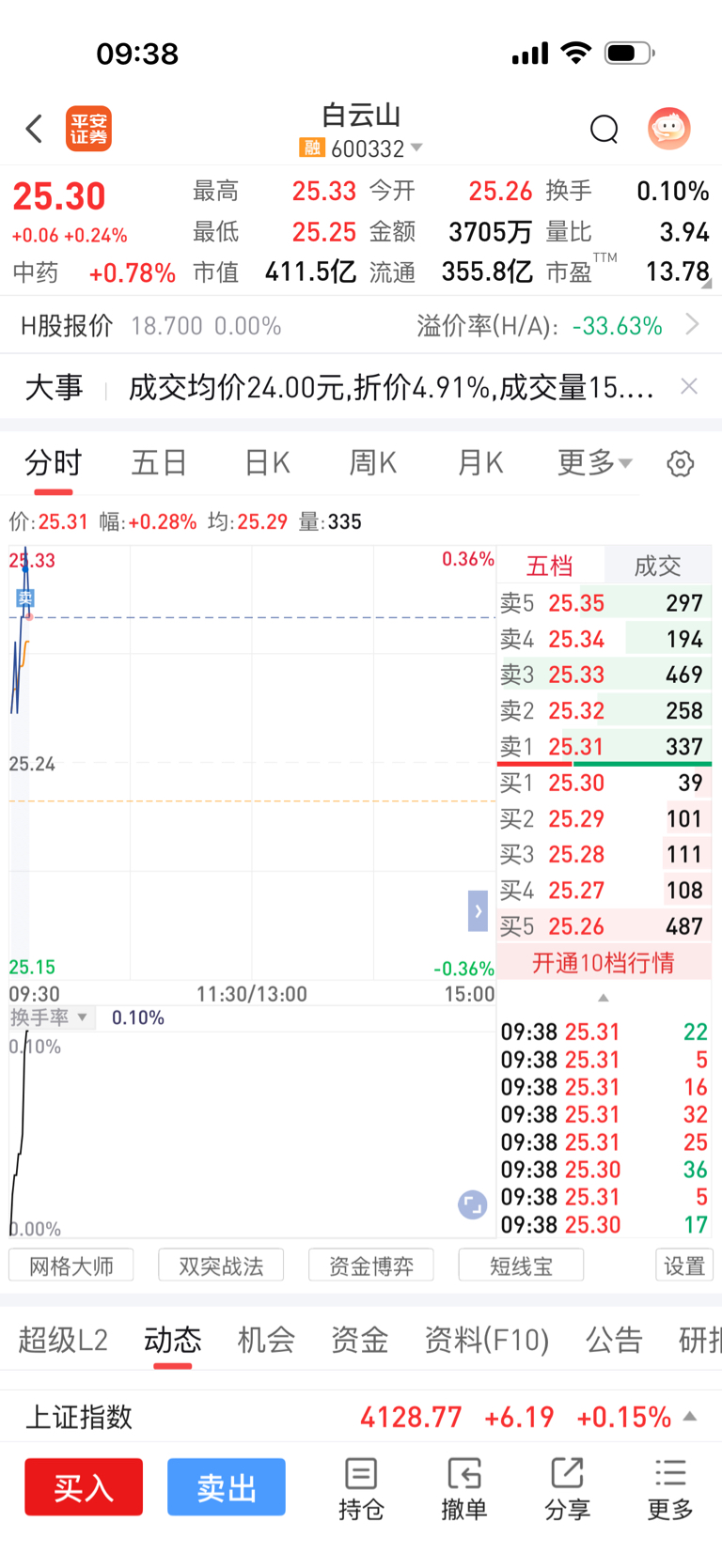 $白云山(SH600332)$ 我就先撤了哈