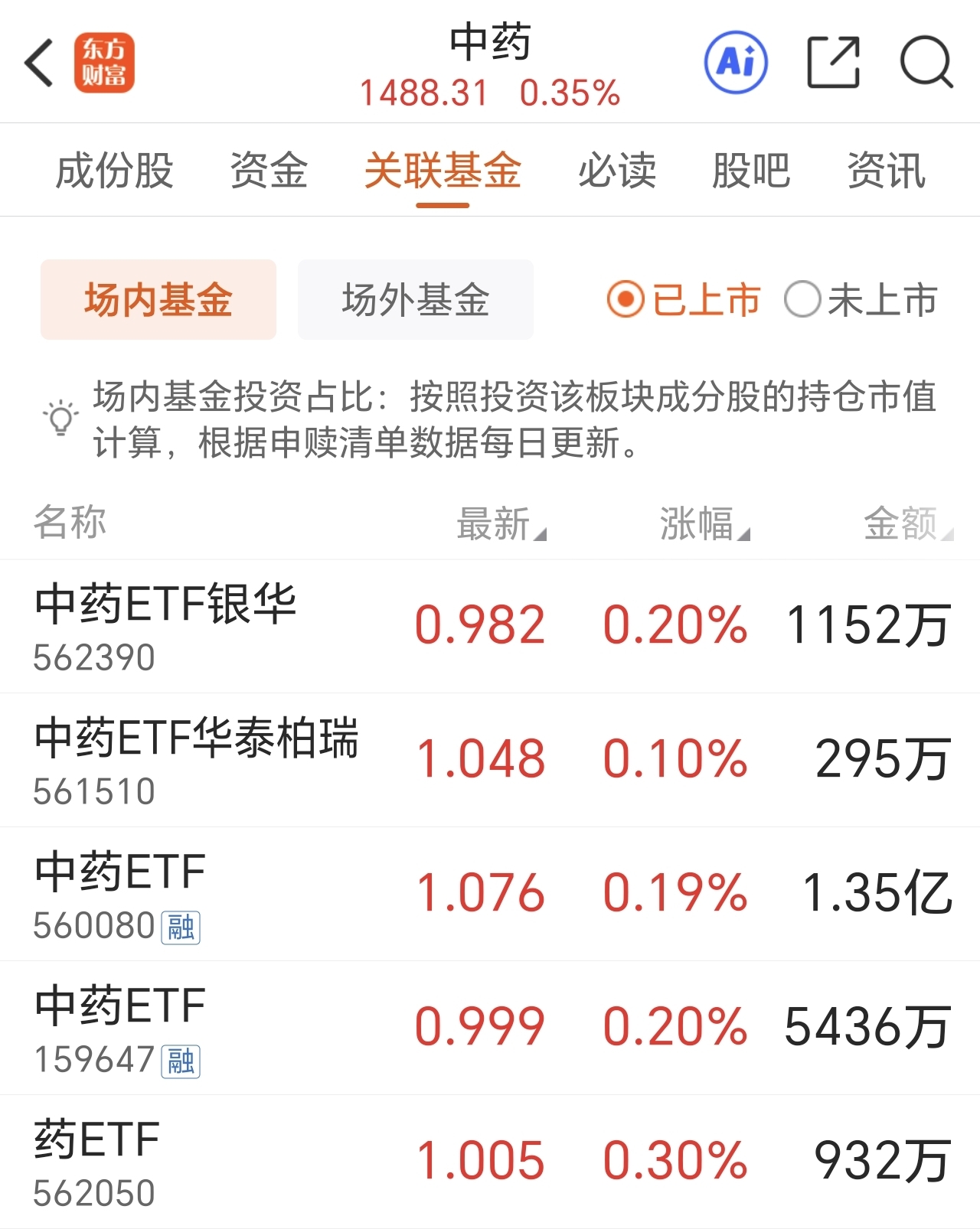 目前整个中药板块ETF居然还不及一只科技股的容量。你说中药还有前途可言吗,唉!