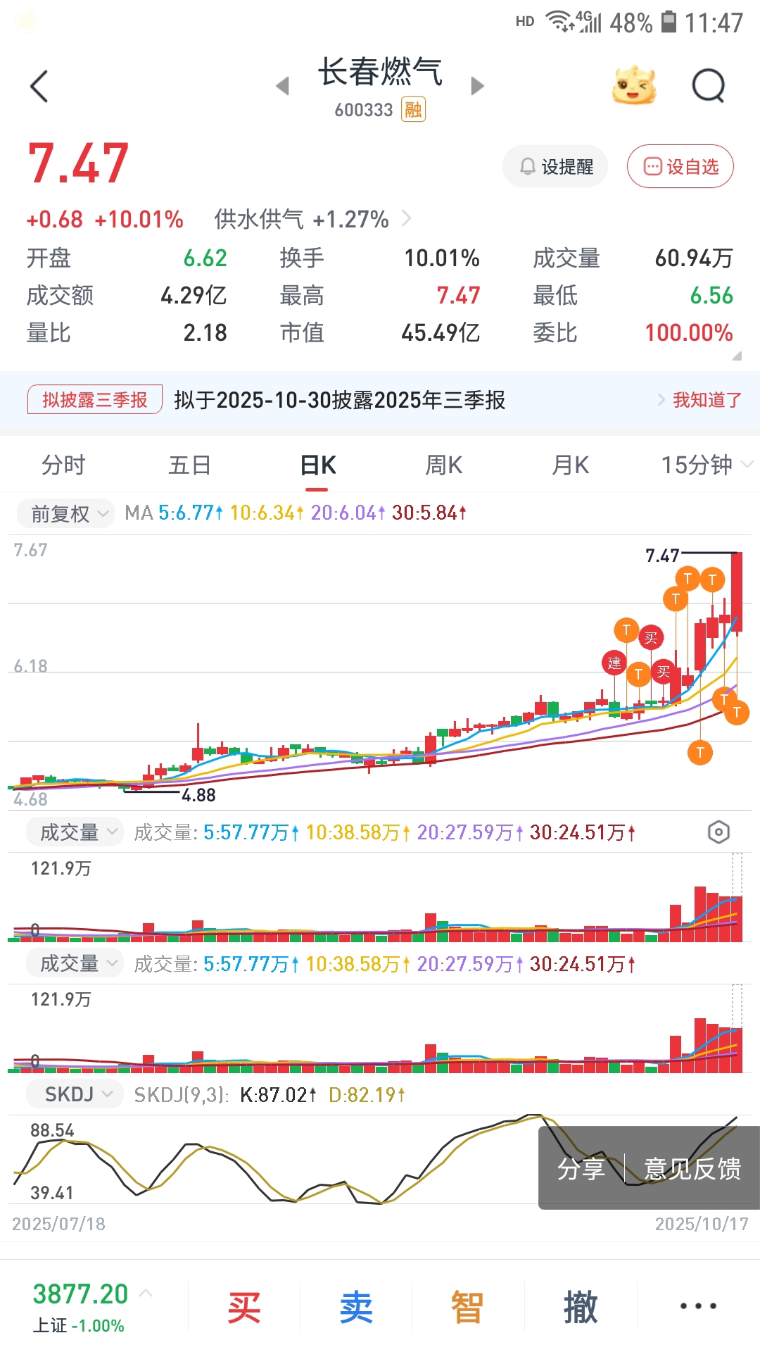 做人做事不能贪,要有自己的底线。小小燃气轻松拿下。清仓长春燃气后面爱怎么涨怎么涨与我无关。感谢主力机构地红包小弟我就收下落袋为安了。