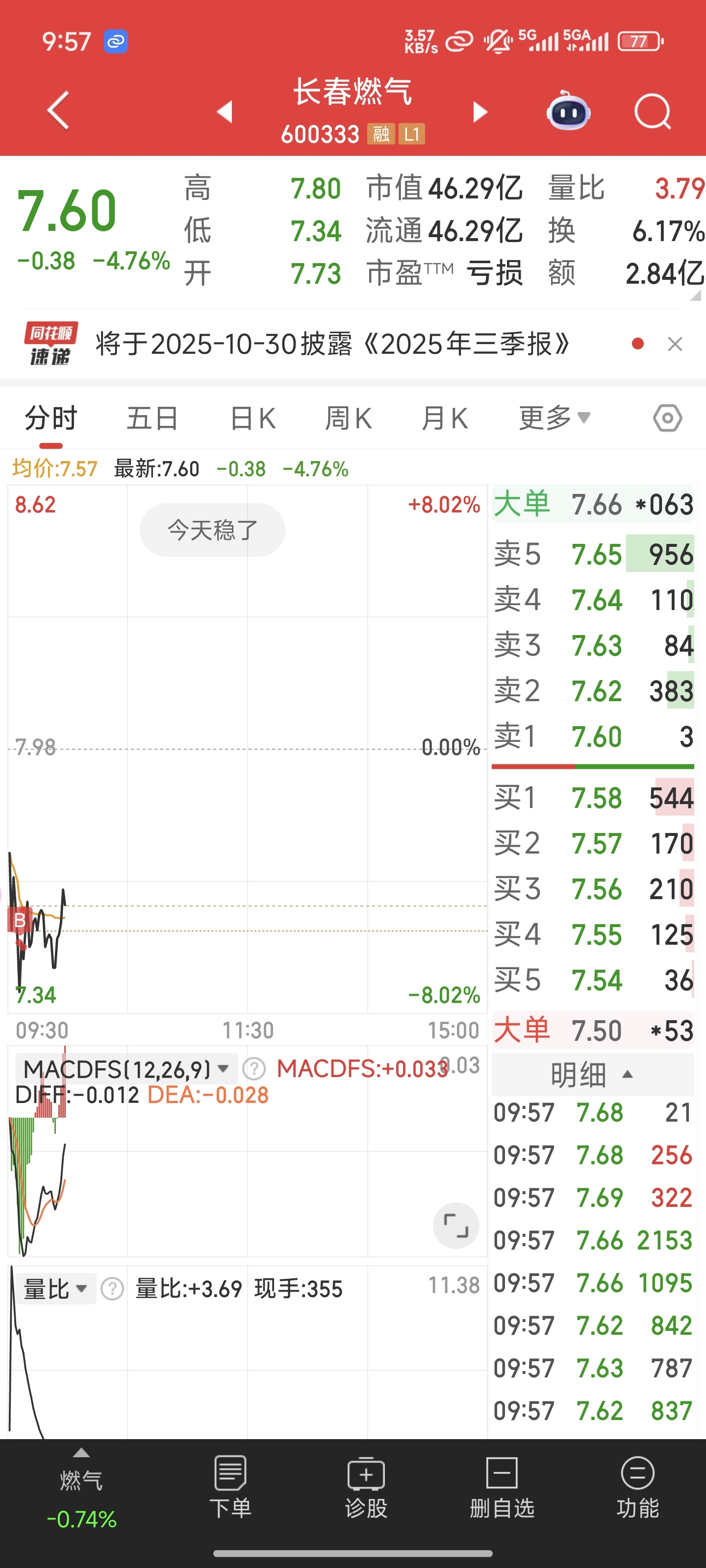 $长春燃气(SH600333)$ 双倍梭哈满上