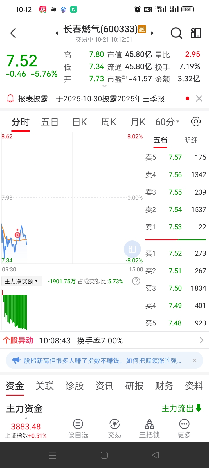 $长春燃气(SH600333)$ 买的位高的人家画线都来不及