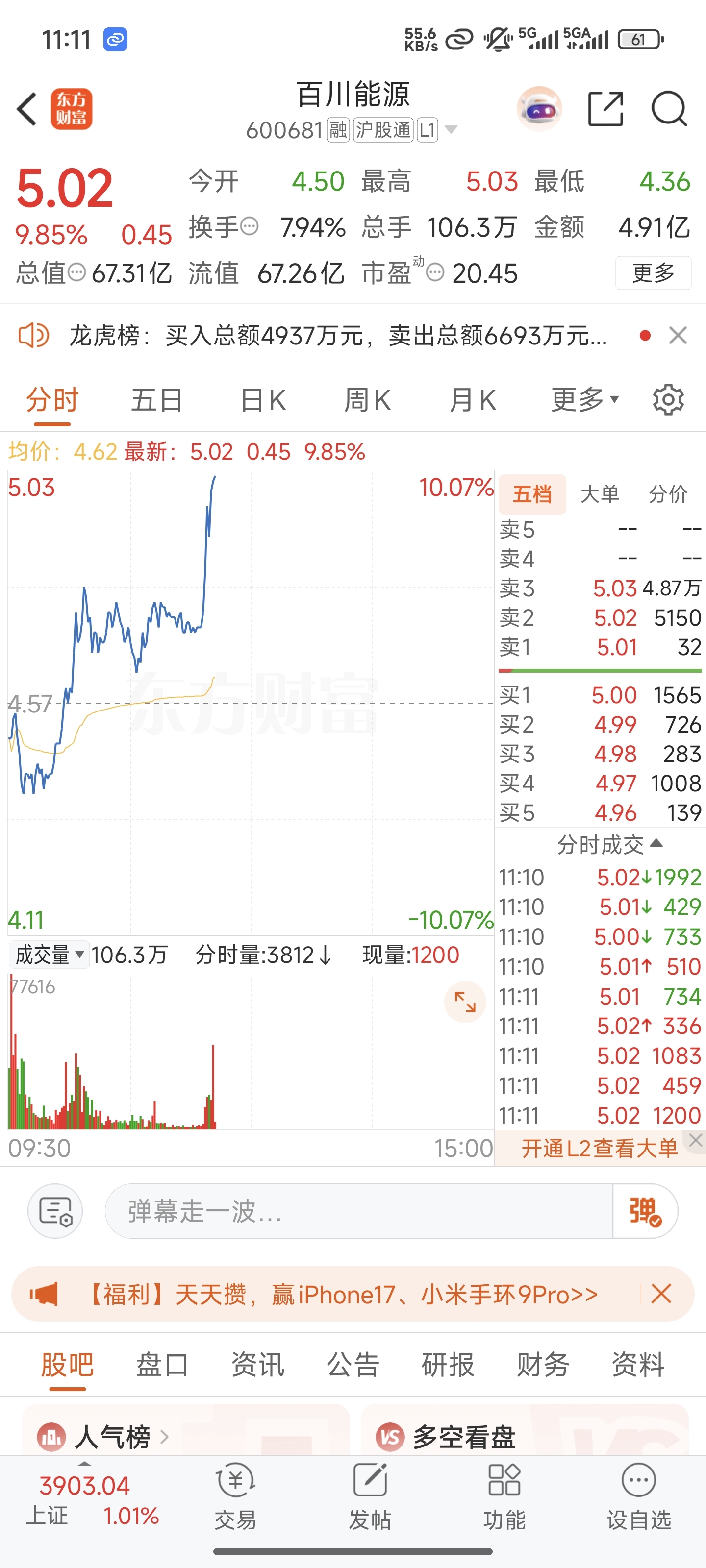$长春燃气(SH600333)$ 百川涨停你跟吗