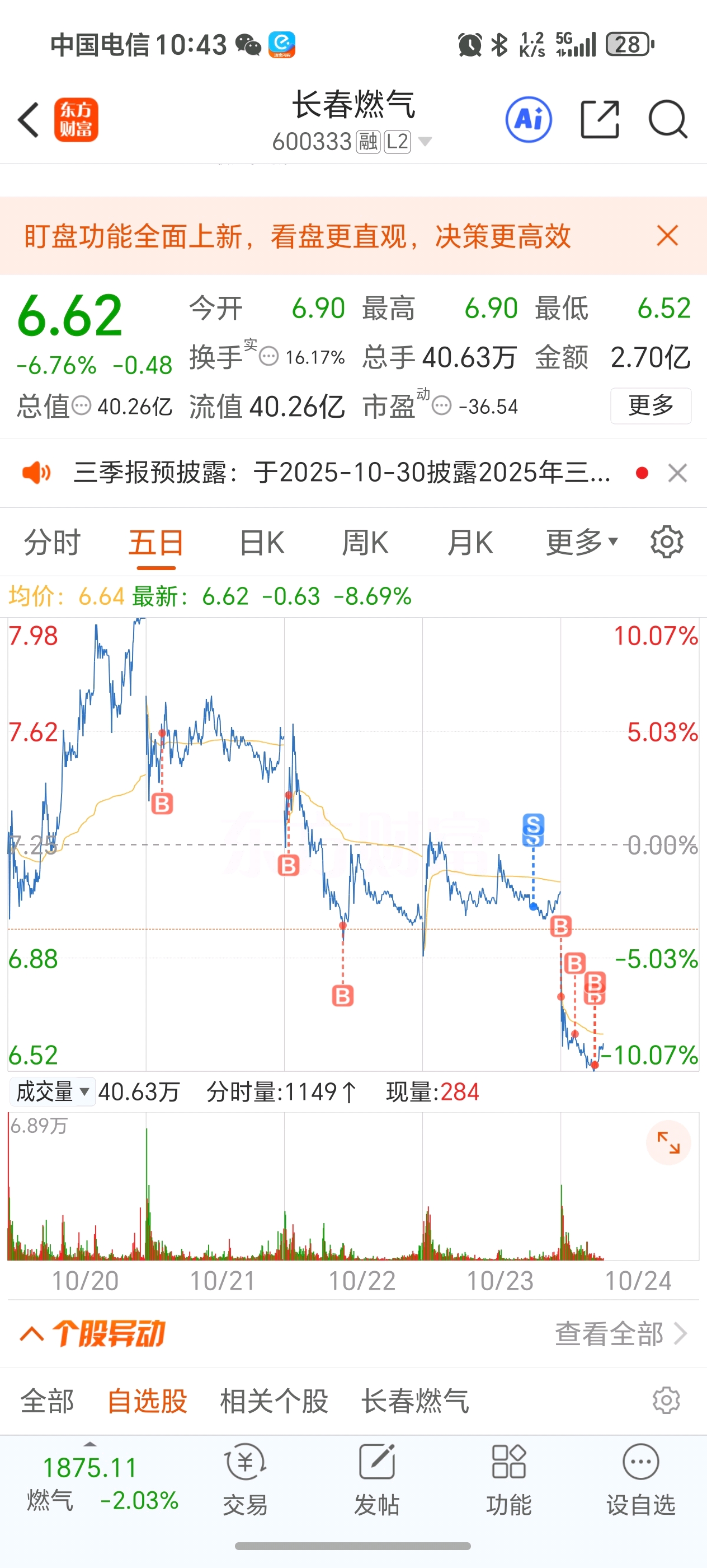 $长春燃气(SH600333)$ 以为小调整,结果直接A了。说真的,真的恶心