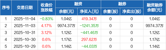 长春燃气:融资净买入419.34万元,融资余额1.04亿元(11-04)