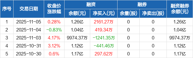 长春燃气:融资净买入2161.27万元,融资余额1.26亿元(11-05)