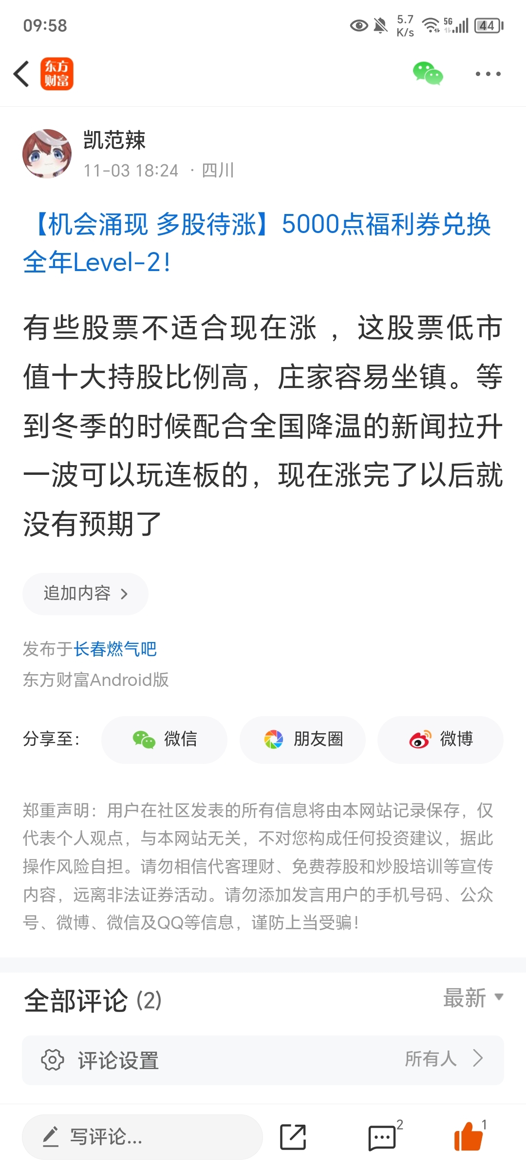 温馨提示: 1.根据《证券法》规定,禁止编造、传播虚假信息或者误导性信息,扰乱证券市场;2.用户在本社区发表的所有资料、言论等仅代表个人观点,与本网站立场无关,不对您构成任何投资建议。用户应基于自己的独立判断,自行决定证券投资并承担相应风险。《东方财富社区管理规定》