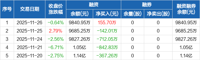 长春燃气:融资净买入155.7万元,融资余额9840.95万元(11-26)