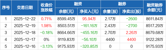 长春燃气:融资净买入95.94万元,融资余额8599.45万元(12-22)