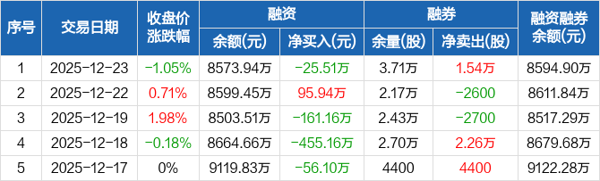 长春燃气:融资净偿还25.51万元,融资余额8573.94万元(12-23)