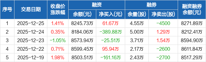 长春燃气:融资净买入61.67万元,融资余额8245.73万元(12-25)