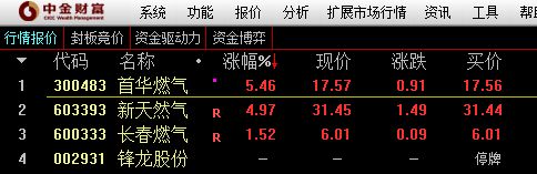 锋龙股份停牌关小黑屋:黄金白银贵金属涨翻天之后就是石油和燃气!今天多只燃气股已经涨超10%以上了:
