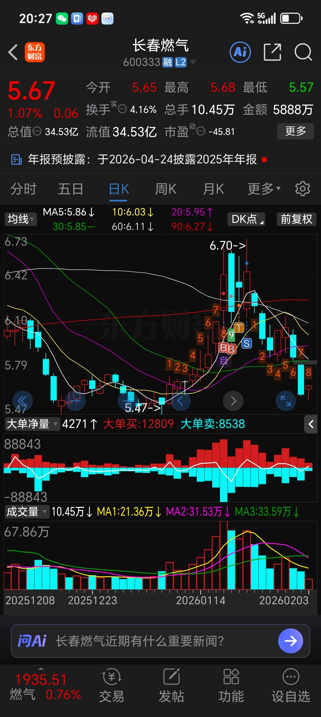 $长春燃气(SH600333)$ 今天回来一看感觉自己走的好及时