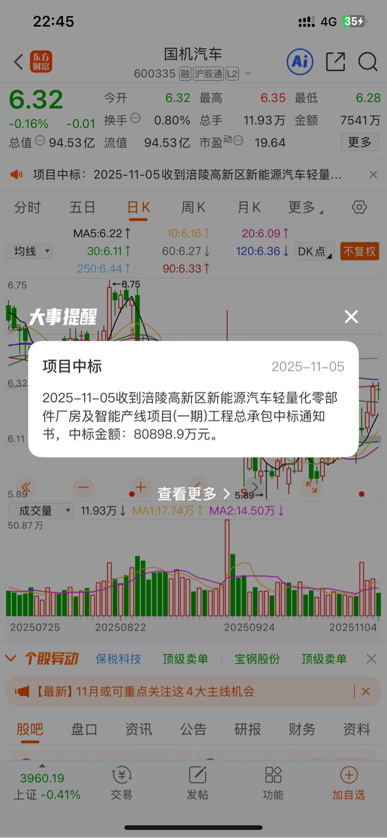 $国机汽车(SH600335)$ 坚持就是胜利,明天预期一字板了,怪不得最近都在吸筹,9个亿中标项目这不一字板,还能怎么办,赶紧挂隔夜