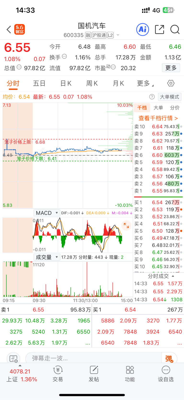 $国机汽车(SH600335)$ 兄弟们终于熬到牛市来了,指数一举突破新高,量价齐升,国机作为低价优质绩优股只要等资金切换进来,5连板7连板不是轻松的事?只要拿住手里低价筹码,牛市随便赚钱,牛市最怕的就是动来动去,结果啥也没捞到,赚钱了都能拥有香车美女