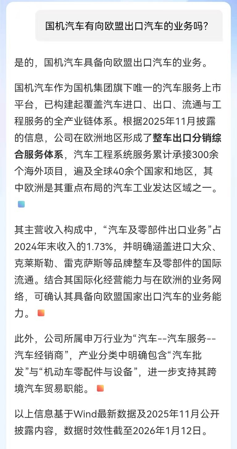 中国机电商会:中欧双方关于电动汽车反补贴案的磋商取得积极成果,国机汽车作为汽车贸