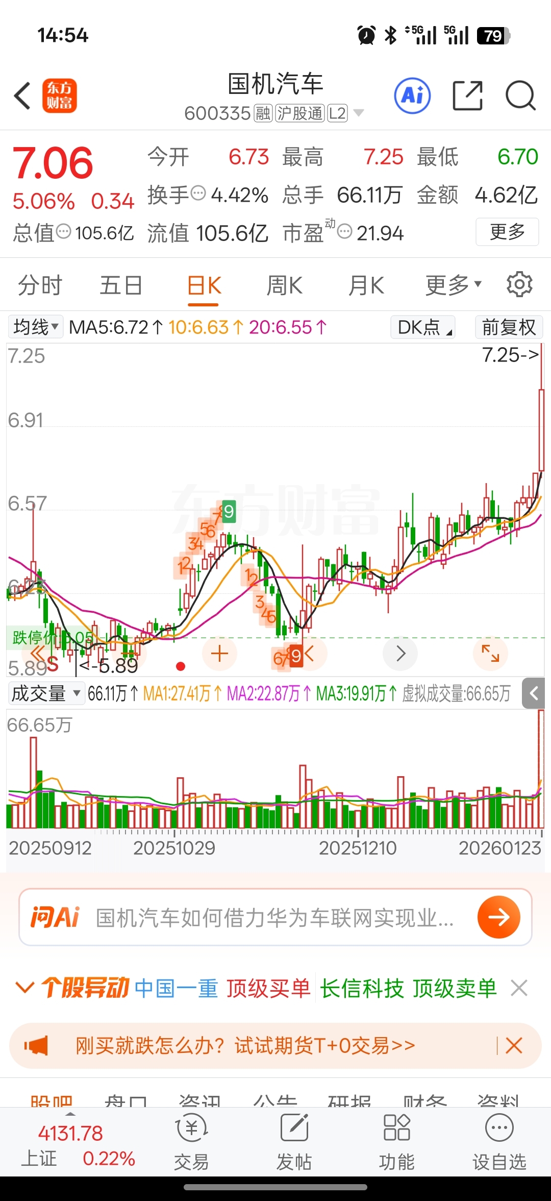 $国机汽车(SH600335)$ 天天去玩羡慕别人赚涨停,那别人一字板跌停跑都跑不出来怎么看不到,坚定持有廉价筹码耐心等待就好了,今天不就是开始放量大涨了吗,不需要涨停,只需要天天涨不停