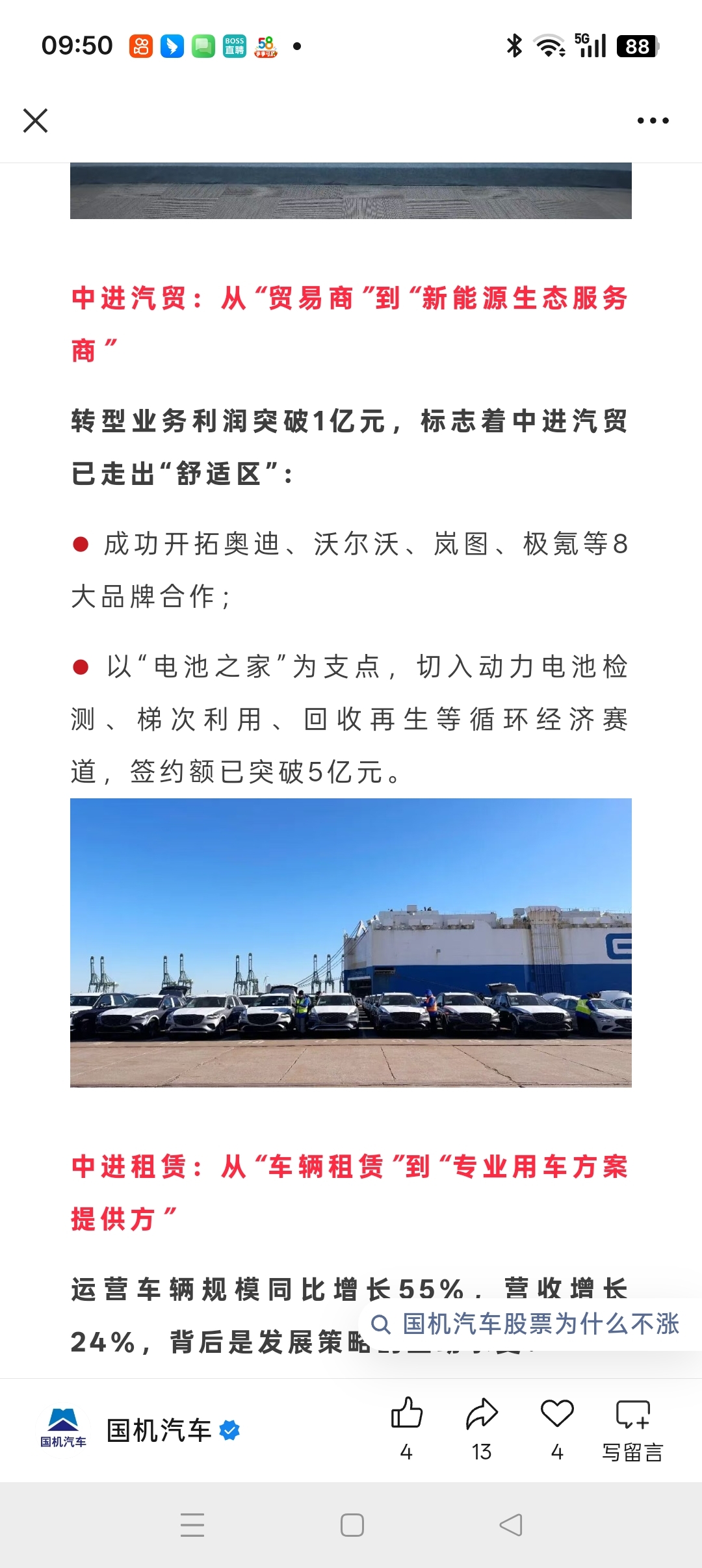 电池之家。国机汽车价值严重低估。加仓。