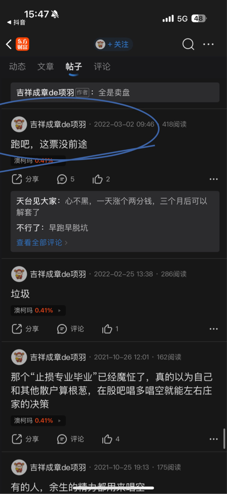 郑重声明:用户在财富号/股吧/博客等社区发表的所有信息(包括但不限于文字、视频、音频、数据及图表)仅代表个人观点,与本网站立场无关,不对您构成任何投资建议,据此操作风险自担。请勿相信代客理财、免费荐股和炒股培训等宣传内容,远离非法证券活动。请勿添加发言用户的手机号码、公众号、微博、微信及QQ等信息,谨防上当受骗!