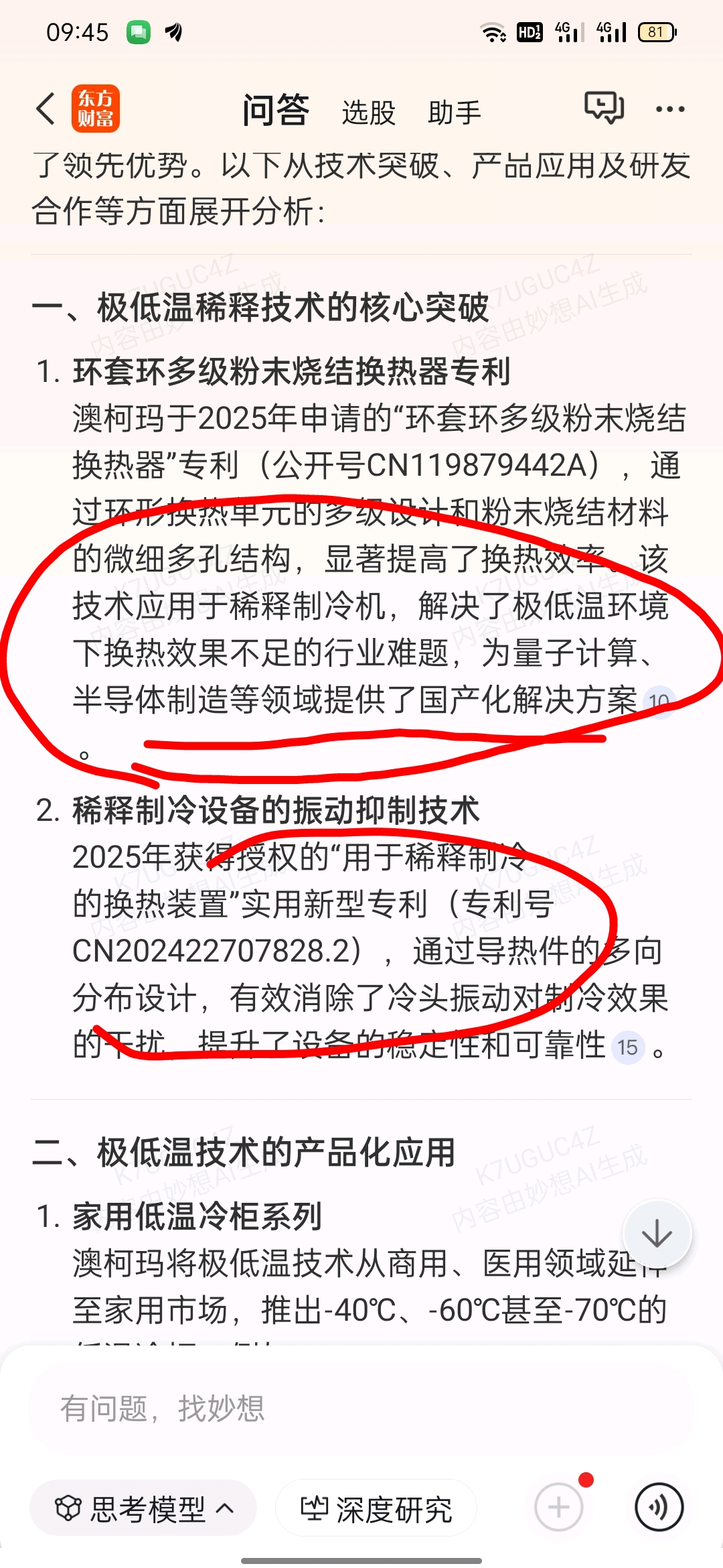 $澳柯玛(SH600336)$ 澳柯玛的极低温稀释技术将在量子计算机和半导体设备行业发挥强大的进口替代作用!