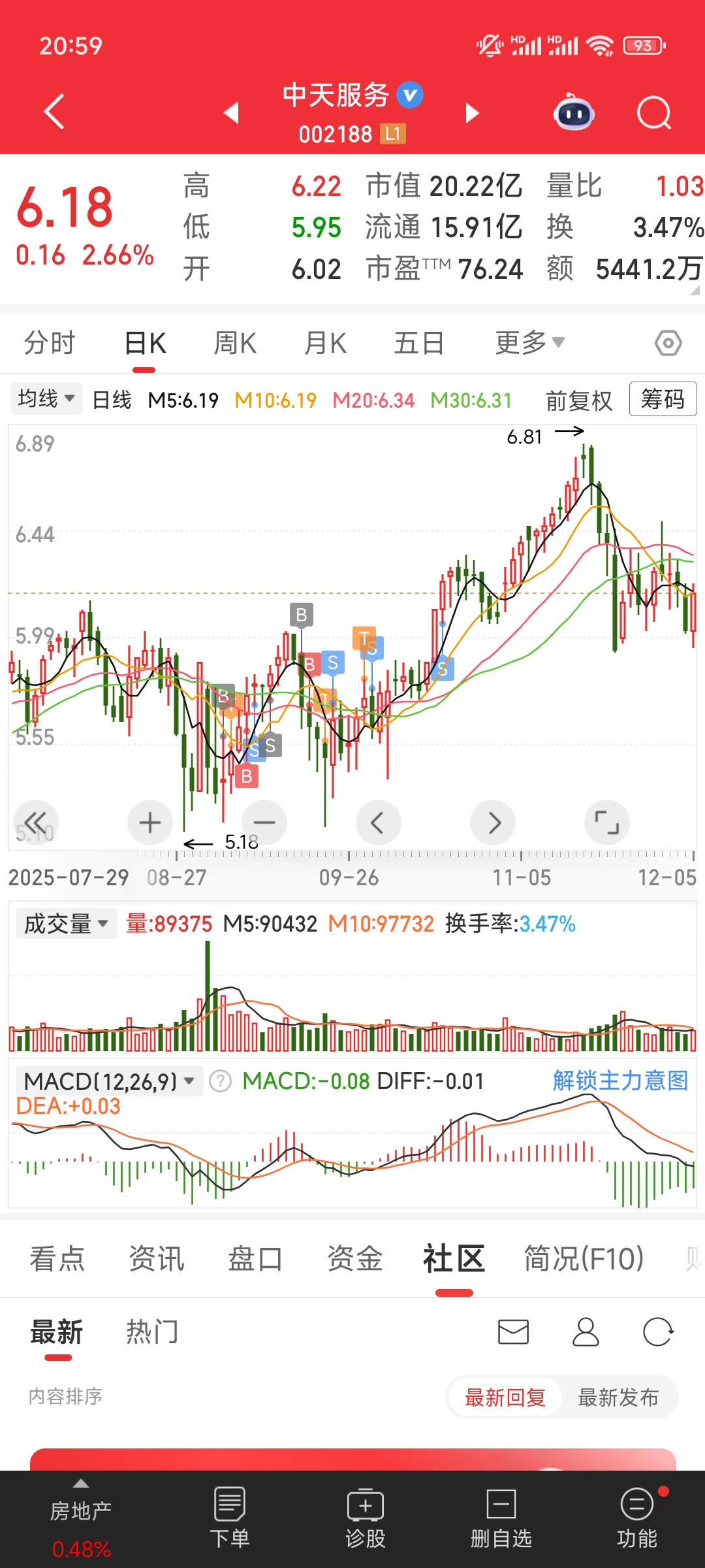 中天服务一直没有放量,我就把仓位挪到了天富和澳柯玛上,结果一路小涨,天天干着急,害怕真飞了,还好没放量,要是放量大涨再跌下来,我肯定会被重仓挂在山上,,,还好现在跌下来了,这次肯定得先买点底仓才行。