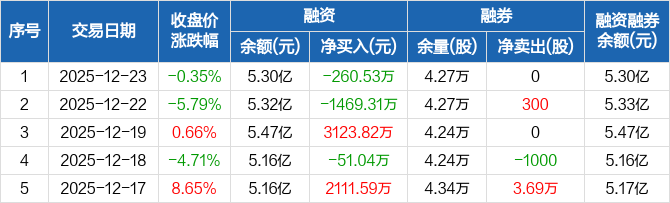 澳柯玛:融资净偿还260.53万元,融资余额5.3亿元(12-23)