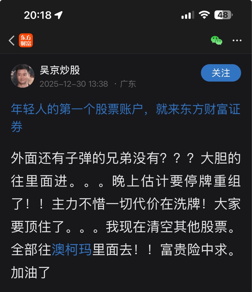 温馨提示: 1.根据《证券法》规定,禁止编造、传播虚假信息或者误导性信息,扰乱证券市场;2.用户在本社区发表的所有资料、言论等仅代表个人观点,与本网站立场无关,不对您构成任何投资建议。用户应基于自己的独立判断,自行决定证券投资并承担相应风险。《东方财富社区管理规定》