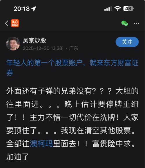 郑重声明:用户在财富号/股吧/博客等社区发表的所有信息(包括但不限于文字、视频、音频、数据及图表)仅代表个人观点,与本网站立场无关,不对您构成任何投资建议,据此操作风险自担。请勿相信代客理财、免费荐股和炒股培训等宣传内容,远离非法证券活动。请勿添加发言用户的手机号码、公众号、微博、微信及QQ等信息,谨防上当受骗!