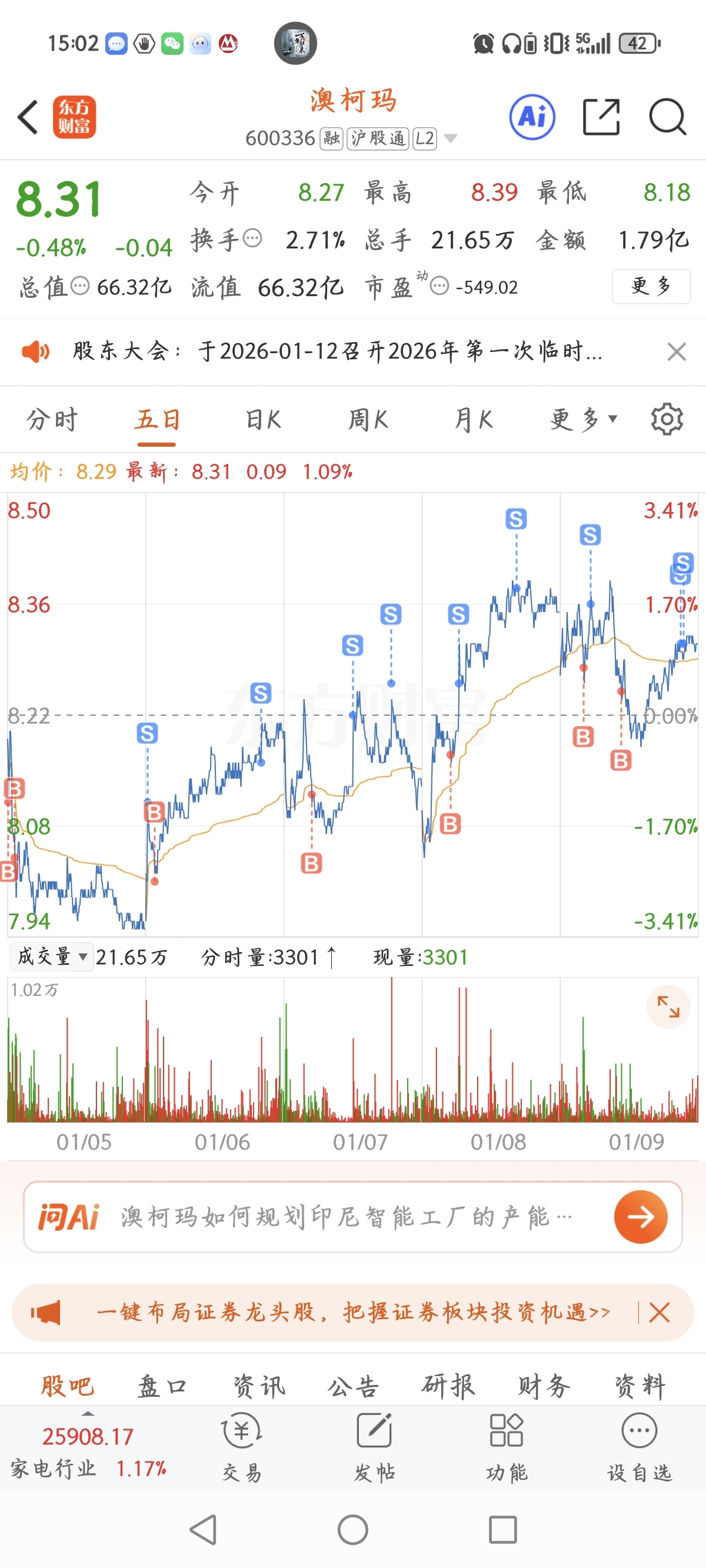 $澳柯玛(SH600336)$ 饭钱到手