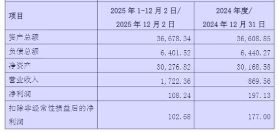 财务数据显示,截至2025年12月2日,智慧产业公司净资产为3.03亿元,较2024年末的3.02亿元略有上升;2025年1月1日至12月2日,智慧产业公司的营业收入1722.36万元,较2024年全年的869.56万元增长近100%;同期的净利润为108.24万元,较2024年的197.13万元有所下降。评估结果显示,智慧产业公司股东全部权益评估增值率达85.36%。