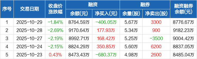 美克家居:融资净偿还406.05万元,融资余额8764.59万元(10-29)