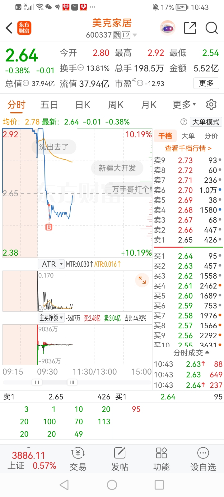 $美克家居(SH600337)$ 能回封涨停板吗?我2.60上车了