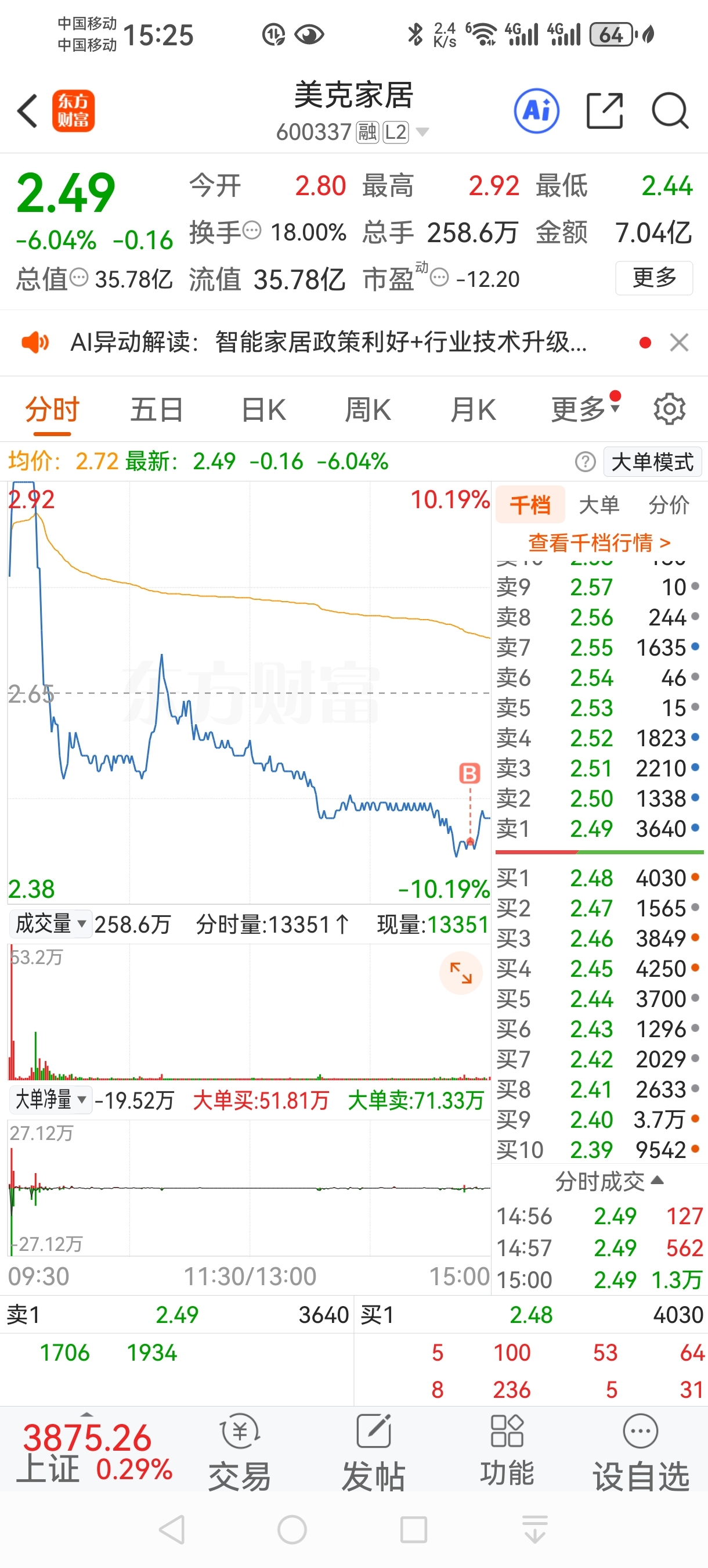 $美克家居(SH600337)$ 明天开盘继续跌能不能补仓各位股神