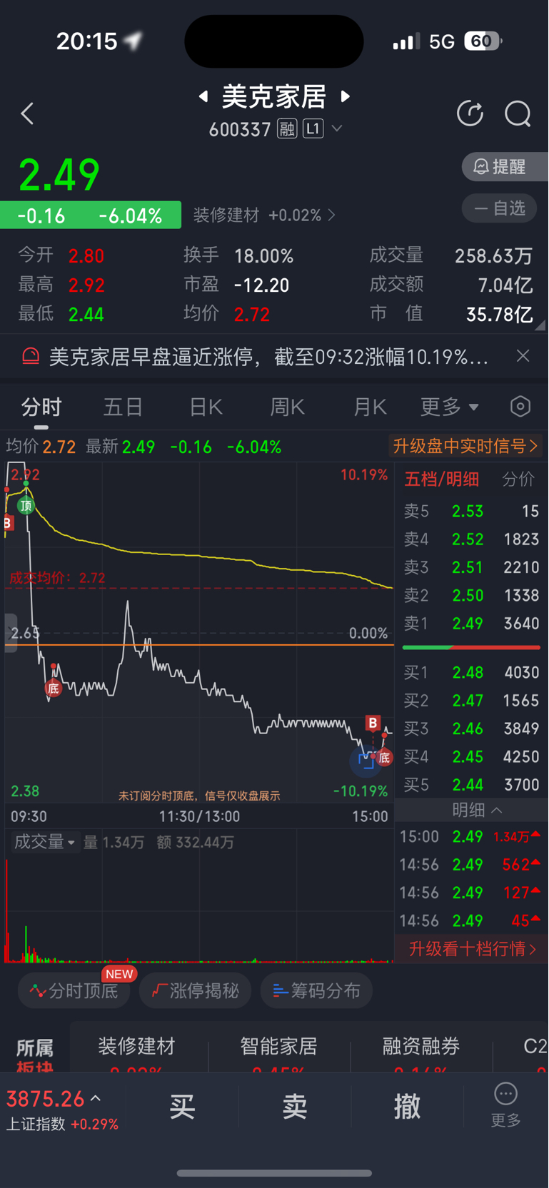 $美克家居(SH600337)$ 真牛逼,一个板就这样A杀,基本上回到起点了,早上8个点打板买入,吃了个天地的大面,还好买的不多,1%的仓位,尾盘已经加了4倍的仓,目前亏损-5个点,明天开盘再跌今天的基础上再加3倍的仓,我筹码多,陪你玩