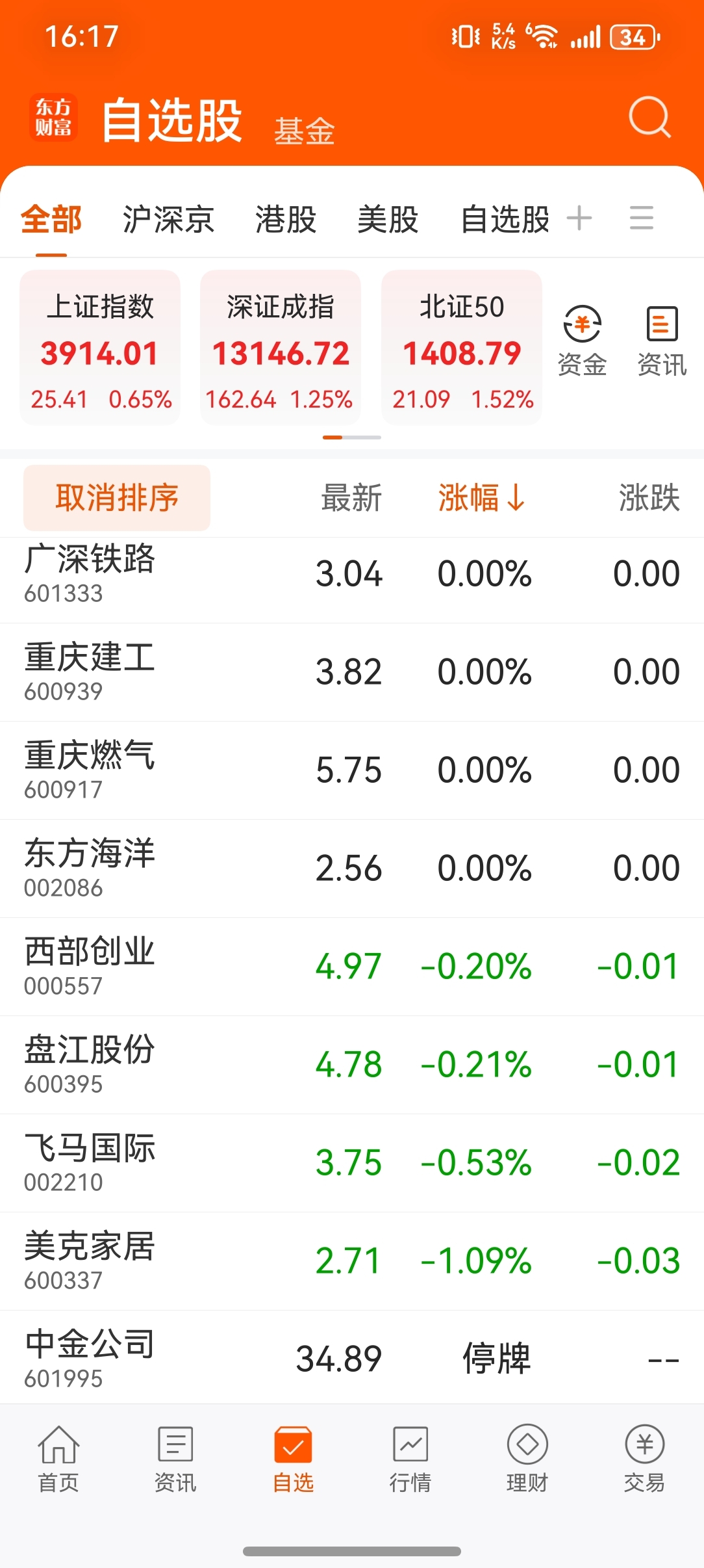 100个自选,4家下跌。其中就有你啊,刚好我就选了你。我也是挺怒其不争的。