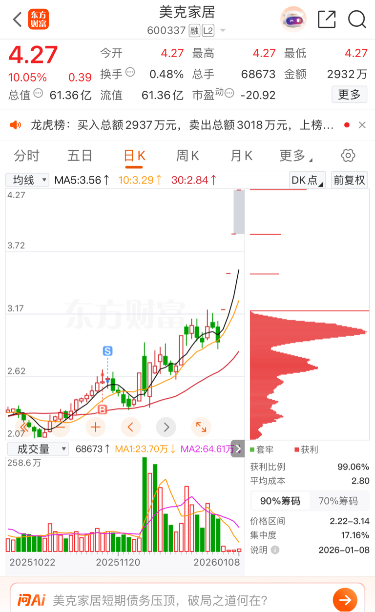 $美克家居(SH600337)$ 能说什么