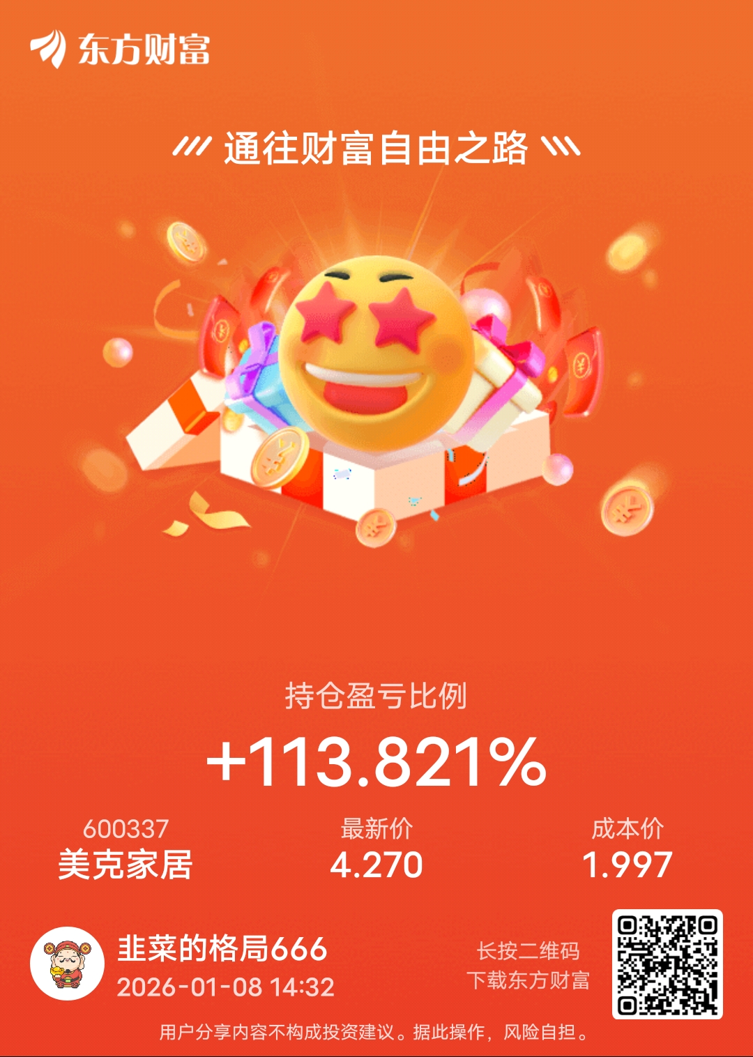 郑重声明:用户在财富号/股吧/博客等社区发表的所有信息(包括但不限于文字、视频、音频、数据及图表)仅代表个人观点,与本网站立场无关,不对您构成任何投资建议,据此操作风险自担。请勿相信代客理财、免费荐股和炒股培训等宣传内容,远离非法证券活动。请勿添加发言用户的手机号码、公众号、微博、微信及QQ等信息,谨防上当受骗!