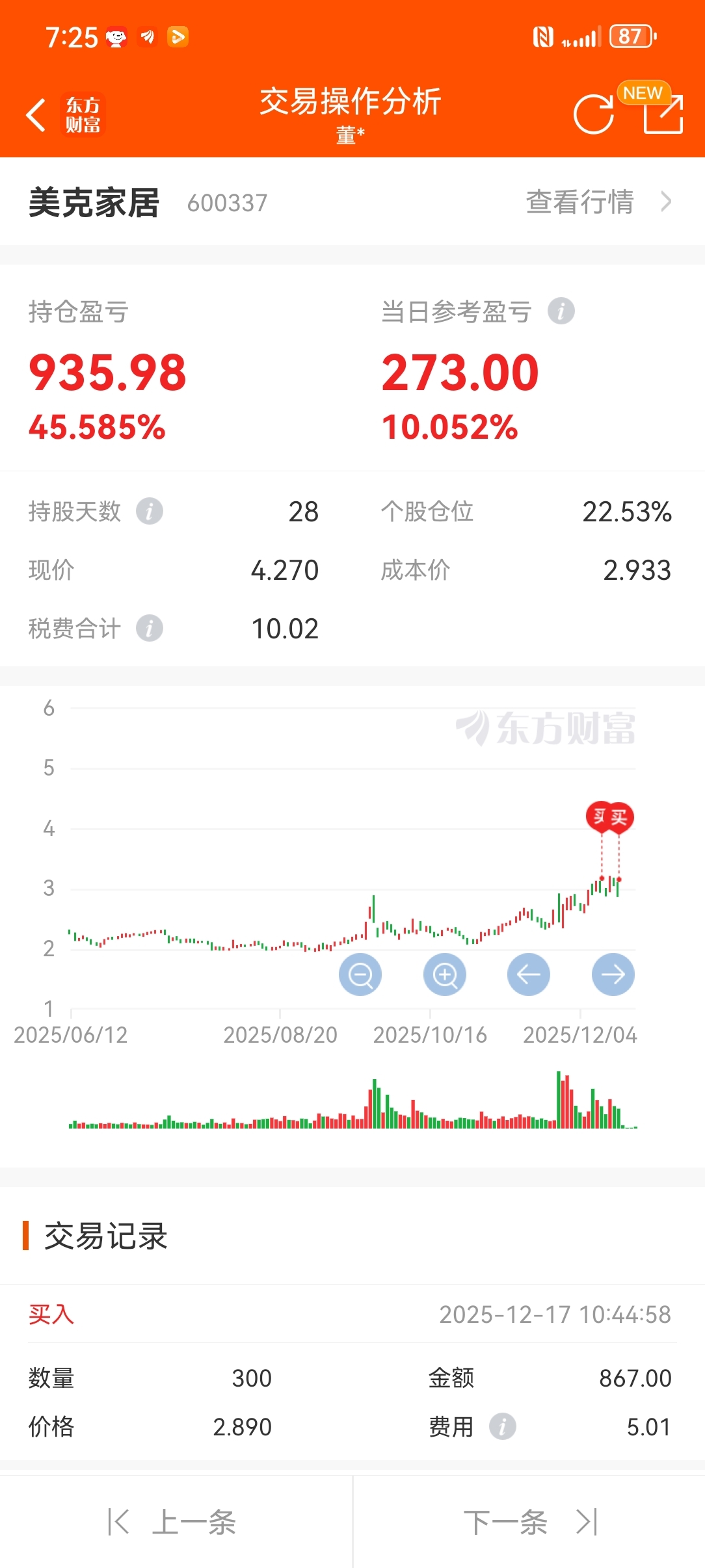 第1次炒股就买了美克家居。