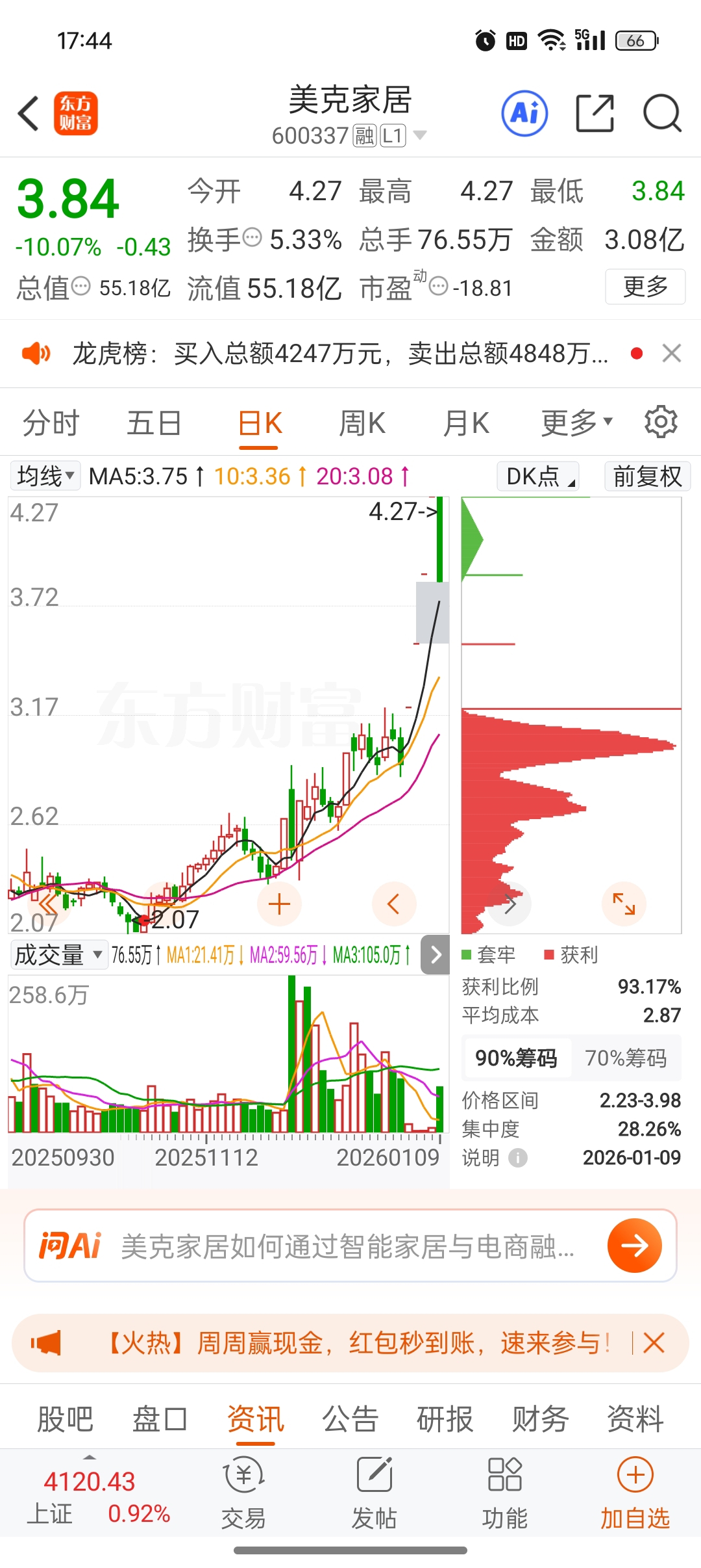 $美克家居(SH600337)$ 底部筹码没动,放心买