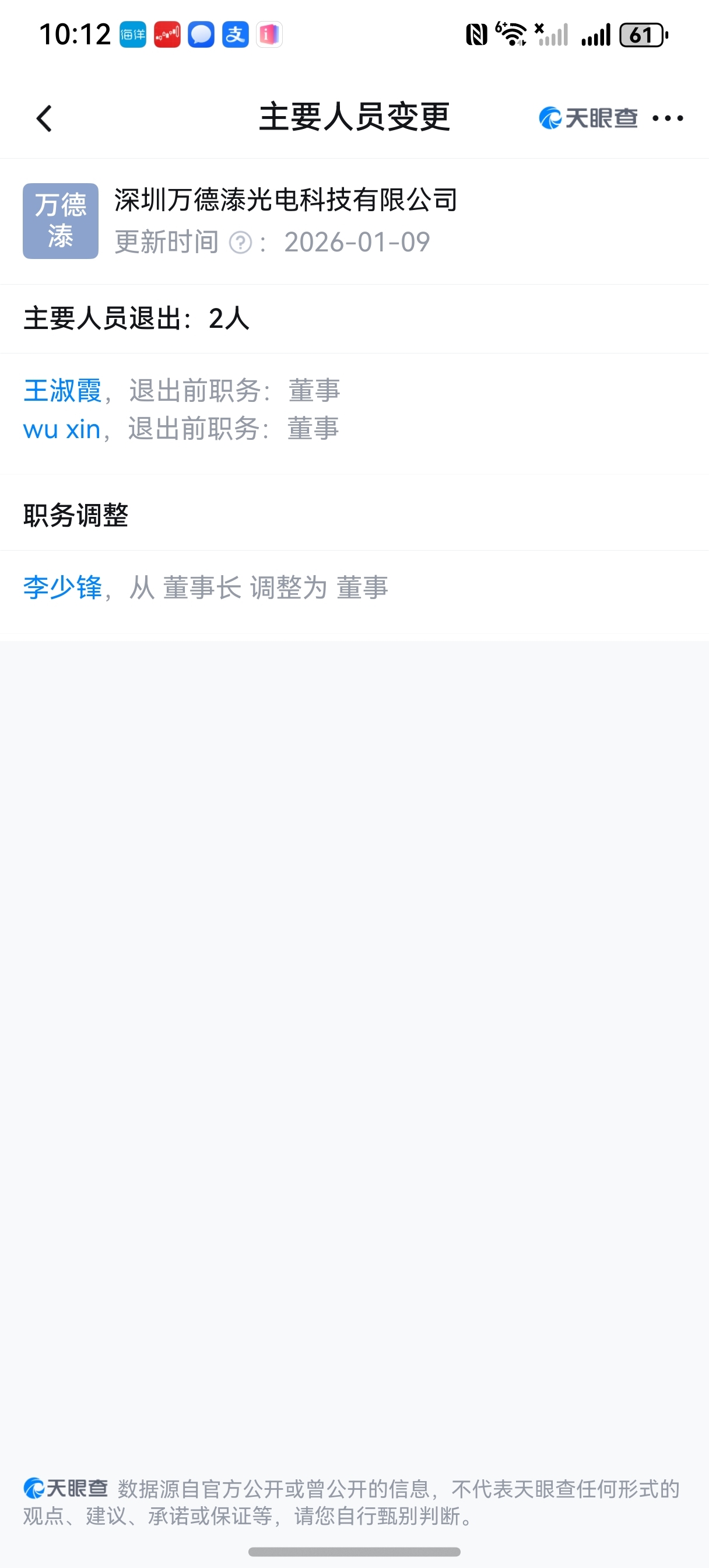 实地考察万德溙光电查询公司董事长李少峰在2026年1月9改为董事,证明美克家居收